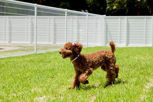 わんちゃんと一緒に思い切り遊んで走り回ることができるドッグランは、約10m×約20mとゆとりある広さ。